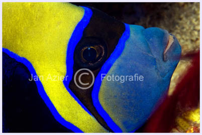 AnemoonvissenHet ziet er zo eenvoudig uit een foto van een anemoonvis die bescherming zoekt in een anemoon. De anemoonvissen zijn echter zeer bewegenlijk en soms als zij hun territorium willen beschermen zwemmen ze uit de anemoon tot vlak tegen de lens om je weg te jagen. Ook beweegt de anemoon vaak in de stroming van het water en gebeurt het dat als je net de foto wilt maken de anemoon omklapt en alles wat er te zien was verdwenen is. Anemoonvissen zijn er in vele soorten en kleuren. Het blijft leuk ze te fotograferen., ondanks dat ze vrij veel voorkomende rifbewoners zijn, die je tijdens duiken in de tropen vaak kunt tegenkomen. Klik hier voor de fotogalerie. |