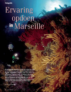 In het najaar van 2006 zijn wij op uitnodiging van het Ffssem, de Franse onderwatersportbond, afgereist naar Marseille. Wij verbleven daar vier dagen en vertegenwoordigden Nederland in een internationale fotowedstrijd, die werd gehouden tegelijk met de Franse nationale competitie. Samen met delegaties uit Frankrijk, Italie, Duitsland, België, Slovenië, Turkije en Monaco. De meeste genodigden bestonden uit fotografen die Nationaal kampioen waren vergezeld van hun modellen. In de twee dagen voor de wedstrijd verkenden wij de duikplekken voor de kust van Marseille met de Franse deelnemer, eigenaar van de locale duikbasis en uiteindelijk winnaar van de wedstrijd. Een symphatieke Fransman met wie wij al snel goede maatjes werden. Het verslag van dit avontuur stond in de onderwatersport van februari 2007. |